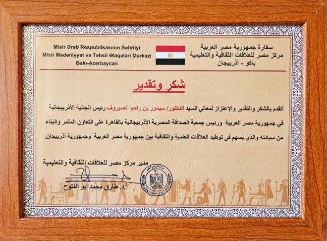 Seymur Nəsirov Misir Təhsil Nazirliyinin Yüksək Medalına Layiq Görüldü
